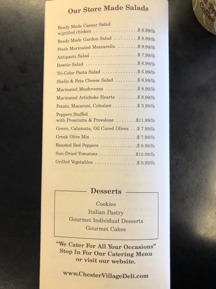 Chester Village Deli & Catering is a hidden gem in the deli world. Located at 69 Brookside Ave in Chester, NY, this cozy spot offers a variety of sandwiches and homemade salads. The Veggie sandwich, with fresh mozzarella, spinach, mushrooms, and artichokes, is a standout favorite. The Porky Pig, with sliced pork, cheddar cheese, and horseradish sauce, is another must-try item. Customers rave about the quality of the sandwiches, with Bob W. praising the Italian combo and daily specials. Joe D. and Rachel S. also commend the friendly staff and delicious offerings. The catering services are top-notch, as Meagan C. attests to the freshness and homemade flavor of the dishes. Chester Village Deli & Catering is a destination worth exploring for a satisfying meal on-the-go or a leisurely dining experience.